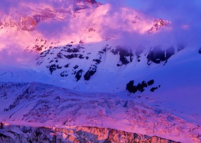 Landscape: The Carbon Glacier and Mt. Rainier at sunrise, Mt. Rainier National Park, Washington (mms11-19-3)